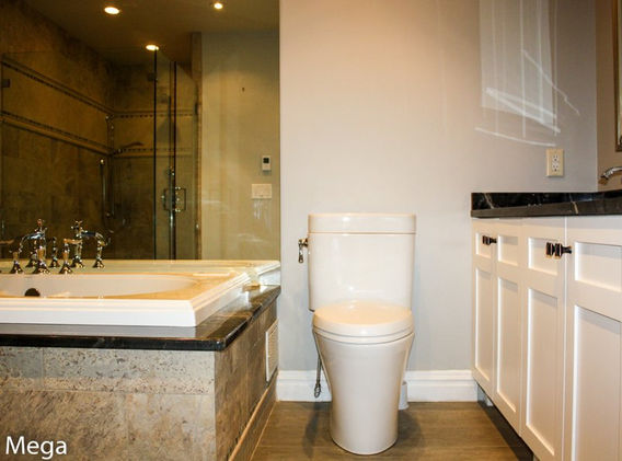 This marvelous master bathroom features white shaker cabinetry with elegant plumbing fixtures, a drop in jacuzzi tub, glass enclosed shower and beautiful tile work.This beautiful glass enclosed shower has wonderful tile work. It also features a shower bench for your convenience. The beautifully tiled shower features stainless steel plumbing fixtures. There is a temperature control knob that will lock in your desired temperature; This allows you to save time (and scalding skin) every time you turn your shower on.
